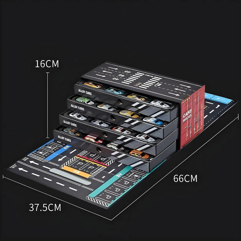 The packing box can be turned into 4x draw design and can be unfolded into garage or city map giving your child to be creative and imaginative, the cars and box are made of Non-Toxic, BPA free materials, ensuring your child safety, with its each new design, color car it adds extra fun while playing.