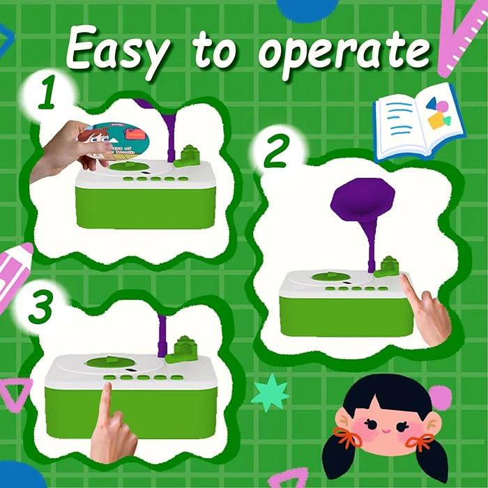 - 【Easy to Operate】This music player doesn’t require a network connection. Just place the card in the slot, stir the stylus, and start playing audio. It not only cultivates children’s listening skills but also improves their fine motor skills through installing and dismantling cards. The phonograph with learning resources has a built-in battery, allowing children to enjoy their favorite audio anytime, anywhere.