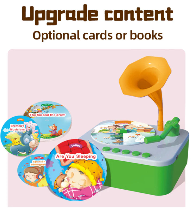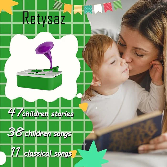 - 【Children’s Story Learning Machine】This children’s phonograph comes with 99 colorful and rich cards. It includes 51 stories, 26 nursery rhymes, 14 classical music and 4 full playlist. Suitable for children of different age groups, this sensory musical toy is the perfect learning toy for kids.