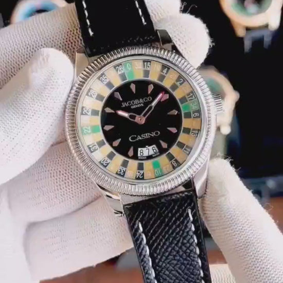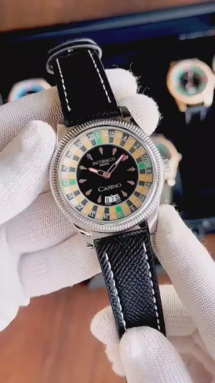 - Black and silver casino-themed dial