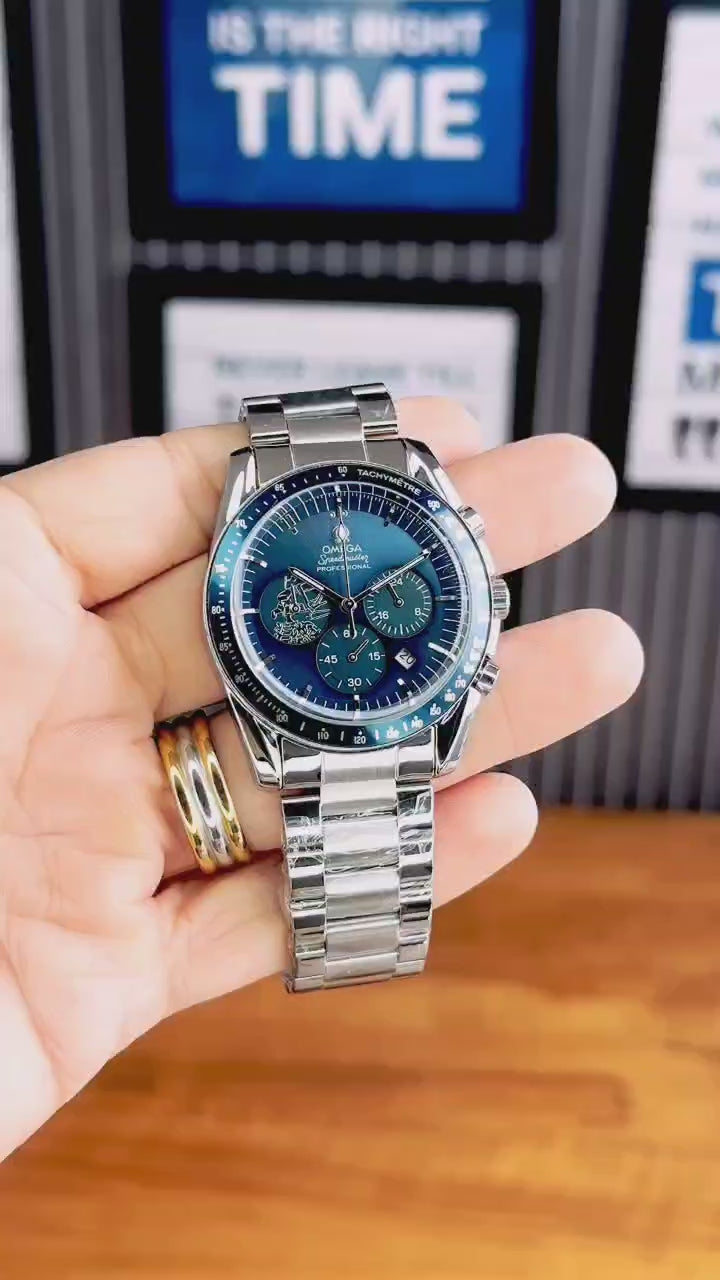 A tribute to one of the most iconic watches in history, this Omega-inspired Moonwatch blends craftsmanship and cosmic legacy in a stunning stainless steel design. Built for the modern explorer, styled for the confident man.